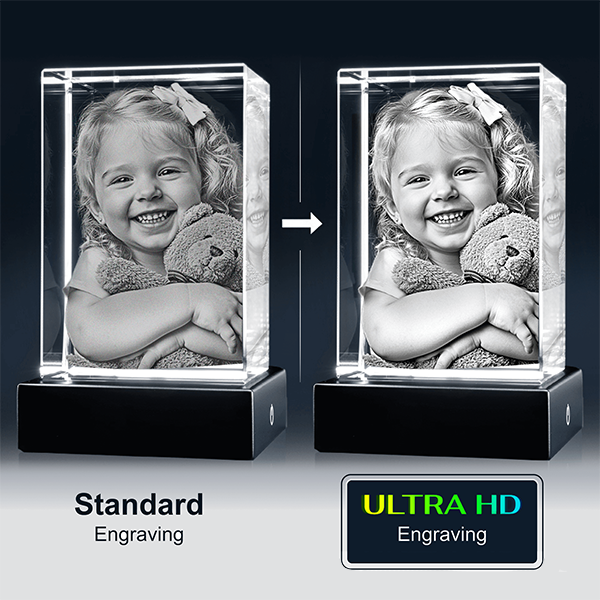 Is there a photo of your pet close to your heart? The 3D Bone Necklace lets you keep it even closer!  Upload your favorite clear, high-resolution photo of your pet and our artists will expertly craft you a high-quality 3D Bone Necklace utilizing our state-of-the-art subsurface laser engraving technology. A 3D engraving is made of tiny, laser-etched dots that come together to recreate your photo inside of the glass crystal. The more dots, the more detailed the image inside the crystal. You can select either from the Standard engraving or upgrade to our Ultra engraving. The Ultra Upgrade provides for optimal detail and clarity with up to 50% more laser dots! More laser dots = more wow in every crystal, resulting in smoother, more defined and solid images providing next-level detail. Includes a 20″ stainless steel chain.